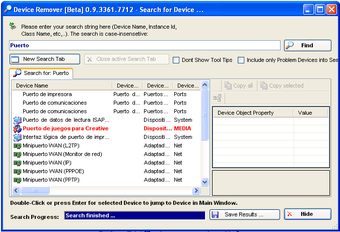 Device Remover es un completísimo gestor de hardware con el cual puedes eliminar dispositivos del sistema o administrar sus propiedades. Para ello, deberás buscarlos primero en la vista de árbol o en el listado tradicional que Device Remover ofrece a tal efecto.